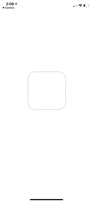 Once the Expo app opens, you will see a white screen with a dotted line box.